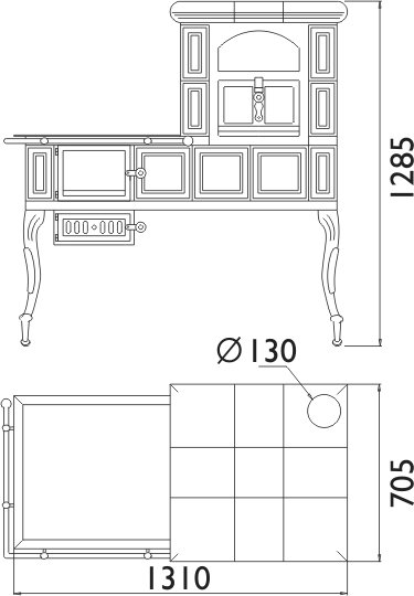 Эксклюзивная модель отопительно варочной печи произведена известной чешской компанией АВХ, производящей кафельные и варочные печи, начиная с 1993 года. Предлагаемая модель варочной печи изготовлена из высокопрочной листовой стали огнеупорных сортов и облицована керамической плиткой, цвет которой (зеленый или коричневый) можно выбрать при покупке. В состав модели входит топка с плоским прямоугольным окном из термооустойчивой стеклокерамики (до 700 градусов Цельсия), большой духовой шкаф, открытая теплая полочка арочного типа и варочная поверхность, обрамленная защитным металлическим поручнем. В качестве каминного топлива рекомендованы сухие дрова. Модель имеет оригинальный дизайн и, помимо своих высоких отопительных и варочных характеристик, способна украсить любой интерьер.